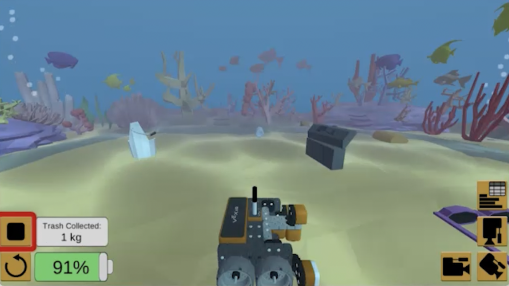 Go to the Coral Reef Clean Up project, watch the video tutorial in the editor and program your robot to move around the sea bed collecting trash.