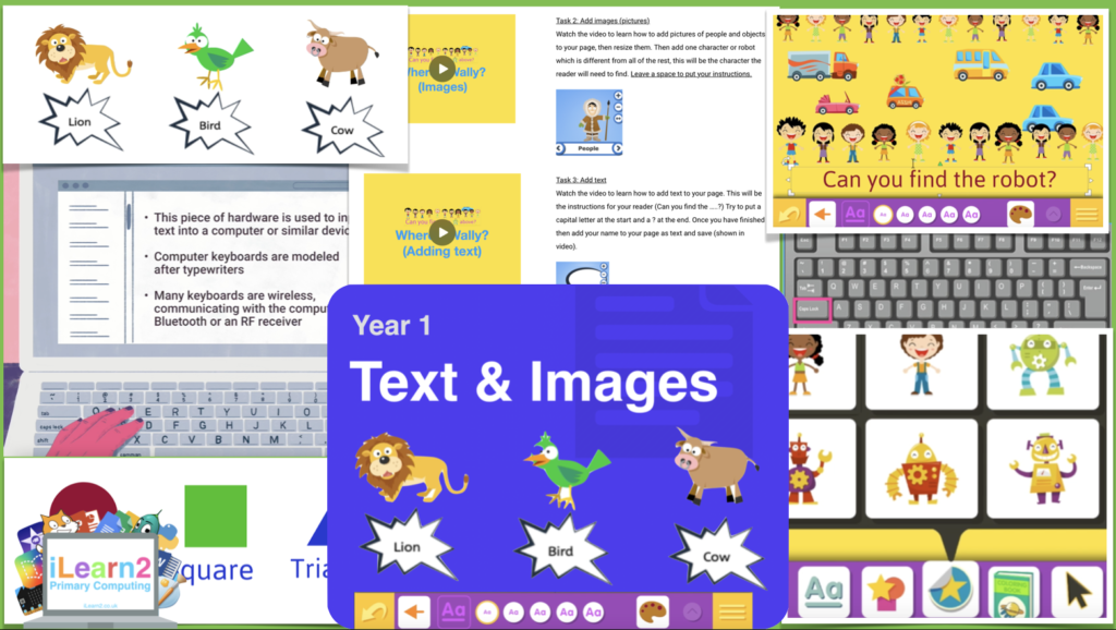 – Introduction video to help with teacher input, covering keyboard skills and examples of text and images.