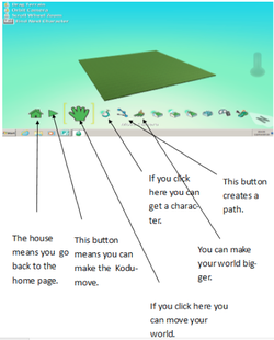 The pupils can also create Kodu User Guides with screenshots (Print Screen key and paste into a program such as Word or PowerPoint), arrows and labels explaining how Kodu works. Below is a pupil example.