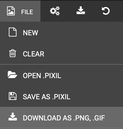 Pupils can save their project as a JPEG file, PNG or BitMap image and there is a screenshot at the end of the first project below demonstrating this. The third video of project 3 demonstrates how to save a project as GIF because it is an animation. If pupils want to continue their art work the next lesson then they will need to save as .PIXIL files (File and Save as .PIXIL) then open that file the next lesson (File and Open .PIXIL).