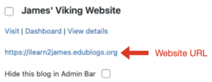 When you have finished your website, share the website URL (found in the dashboard when you first sign into Edublogs – see screenshot below) with a classmate, which they can type into their browser. Your teacher may have placed a password on your website but then you can provide feedback about their website and visa-versa. Try to provide 3 things you liked about their website and 1 thing they could improve.